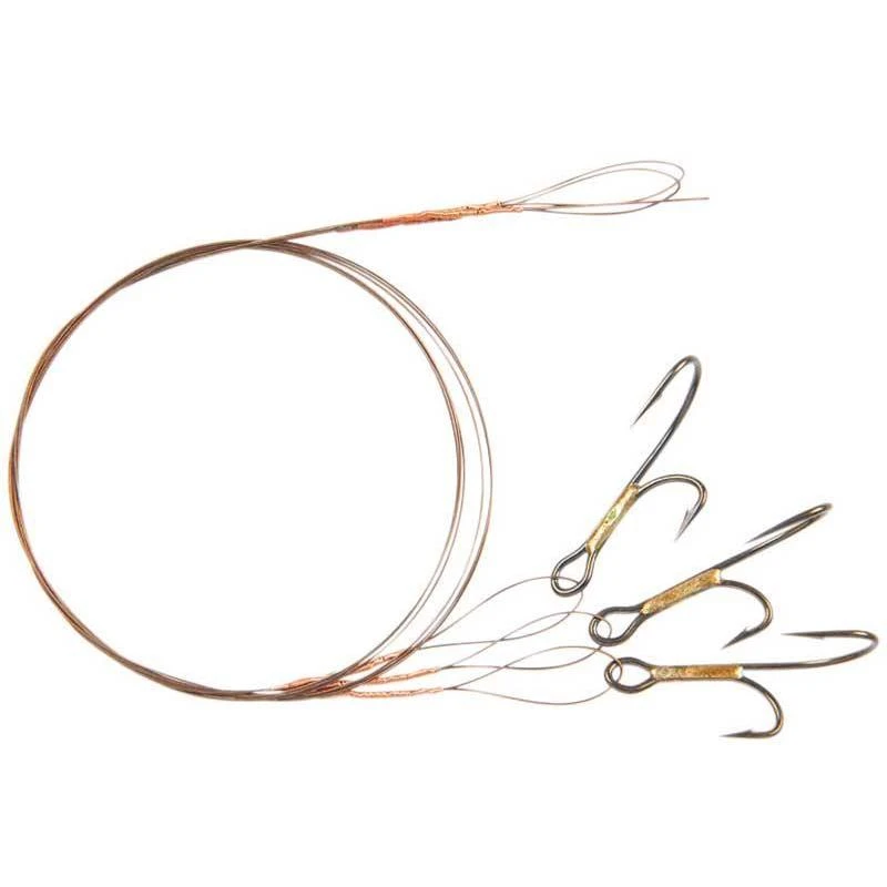 Hameçons bronzés double ryder montés sur un avançon Steel Essox 19 brins de 40 cm ultra souple pour une discrétion assurée.